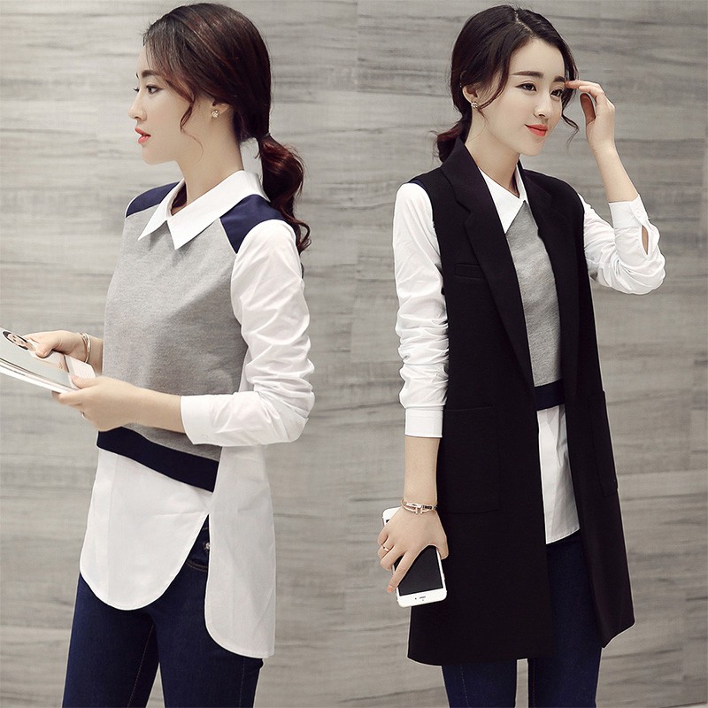 K640 áo Bầu Dáng Dài Kết Hợp áo Sơ Mi Kiểu Dáng Thời Trang